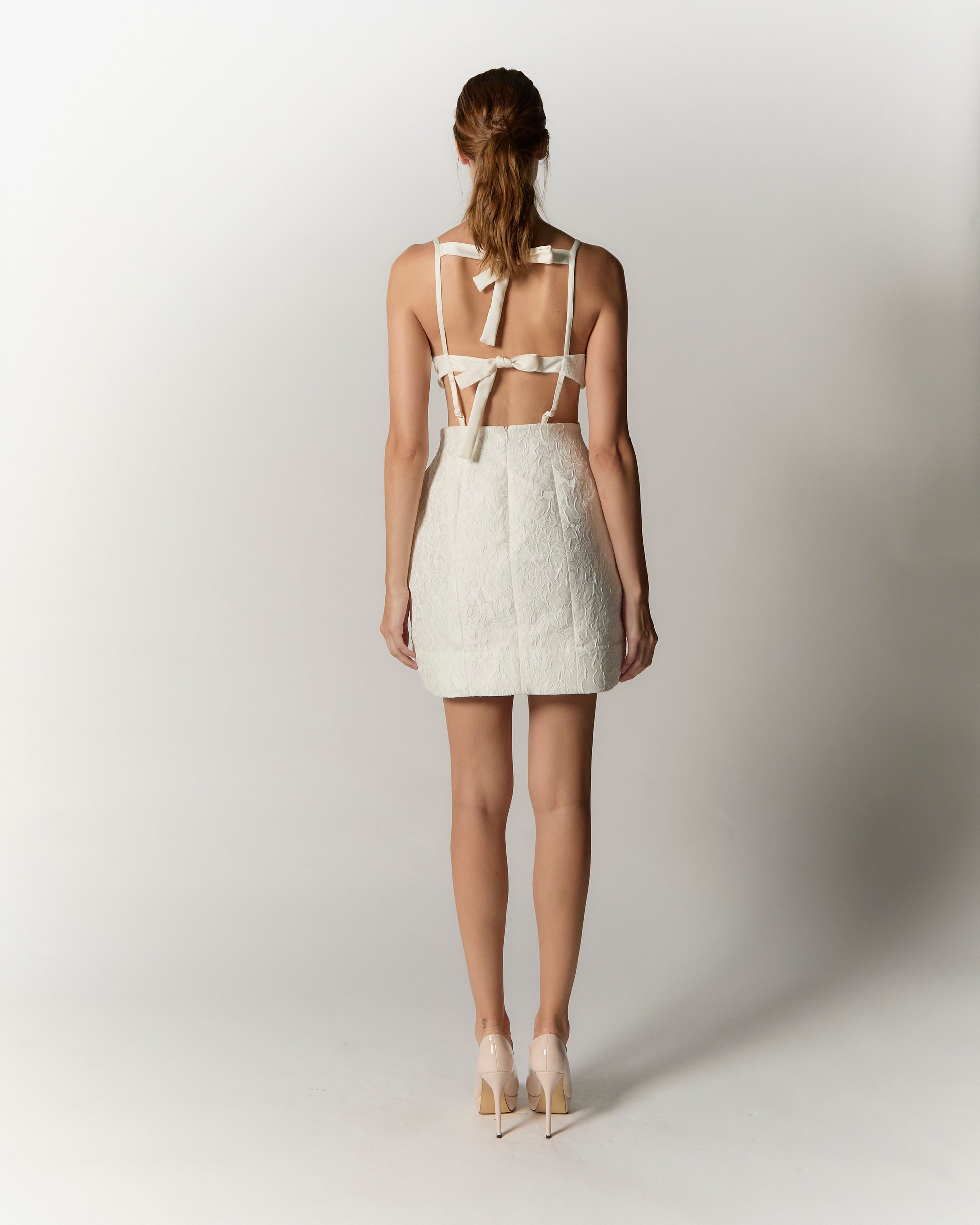 Meet the Quimper Dress, a modern white jacquard piece ideal for cocktail events. Its sleek design combines comfort and durability, making it a stylish and versatile choice to impress at any gathering.