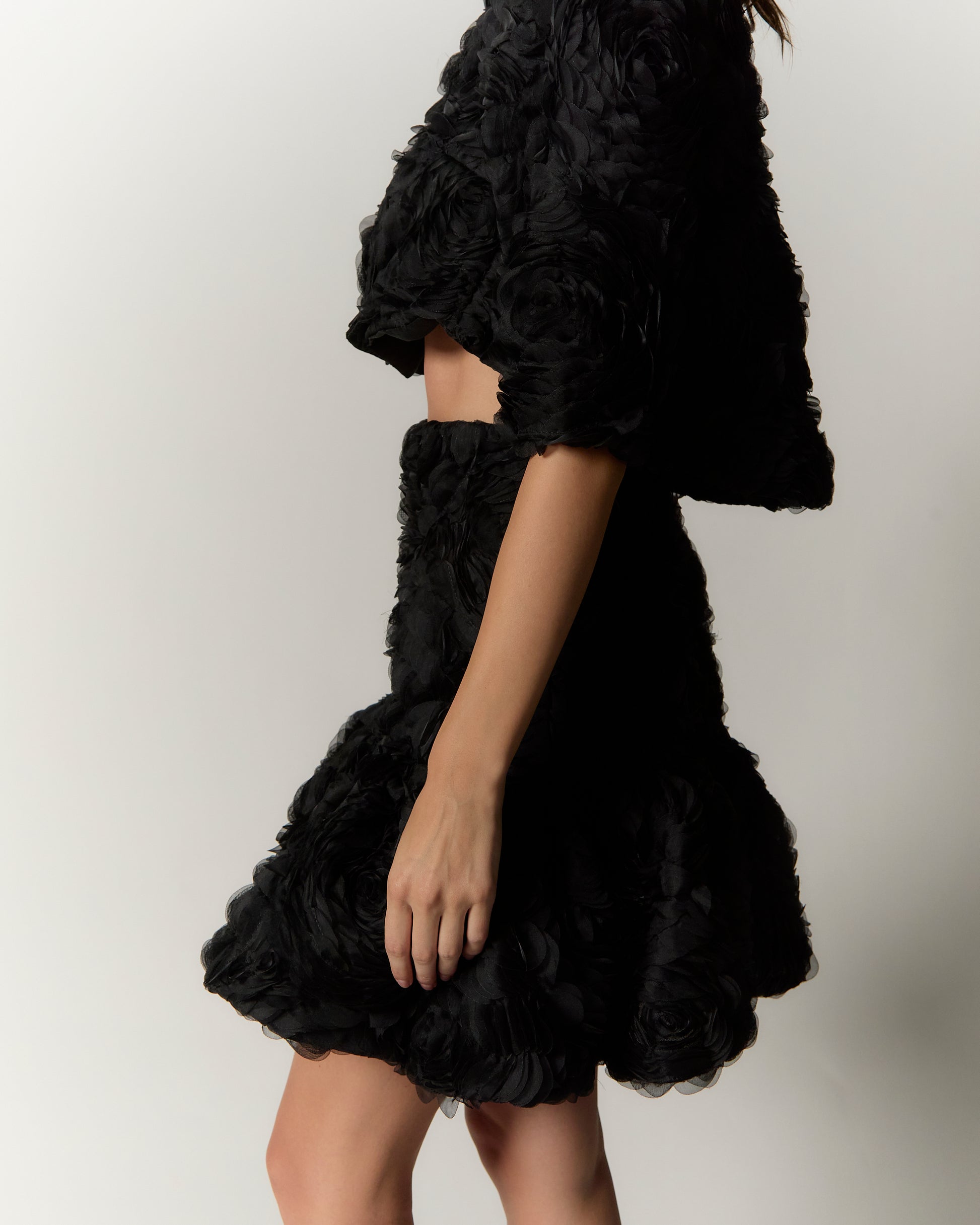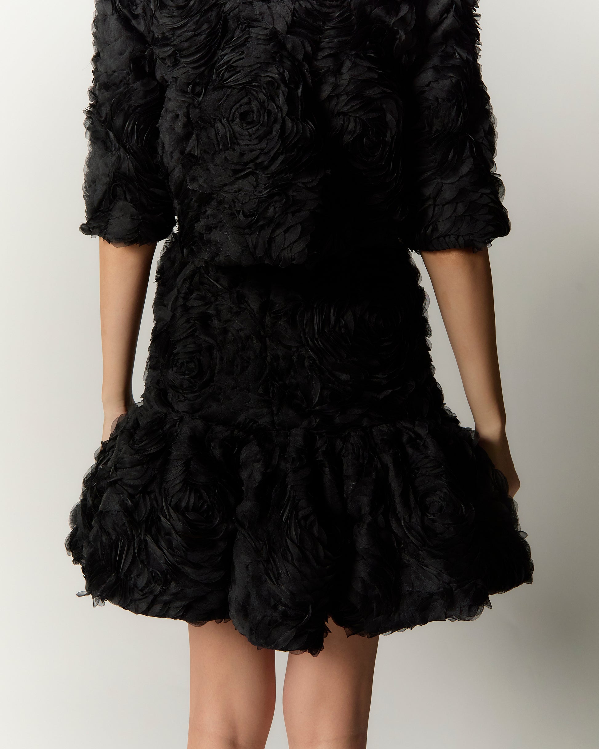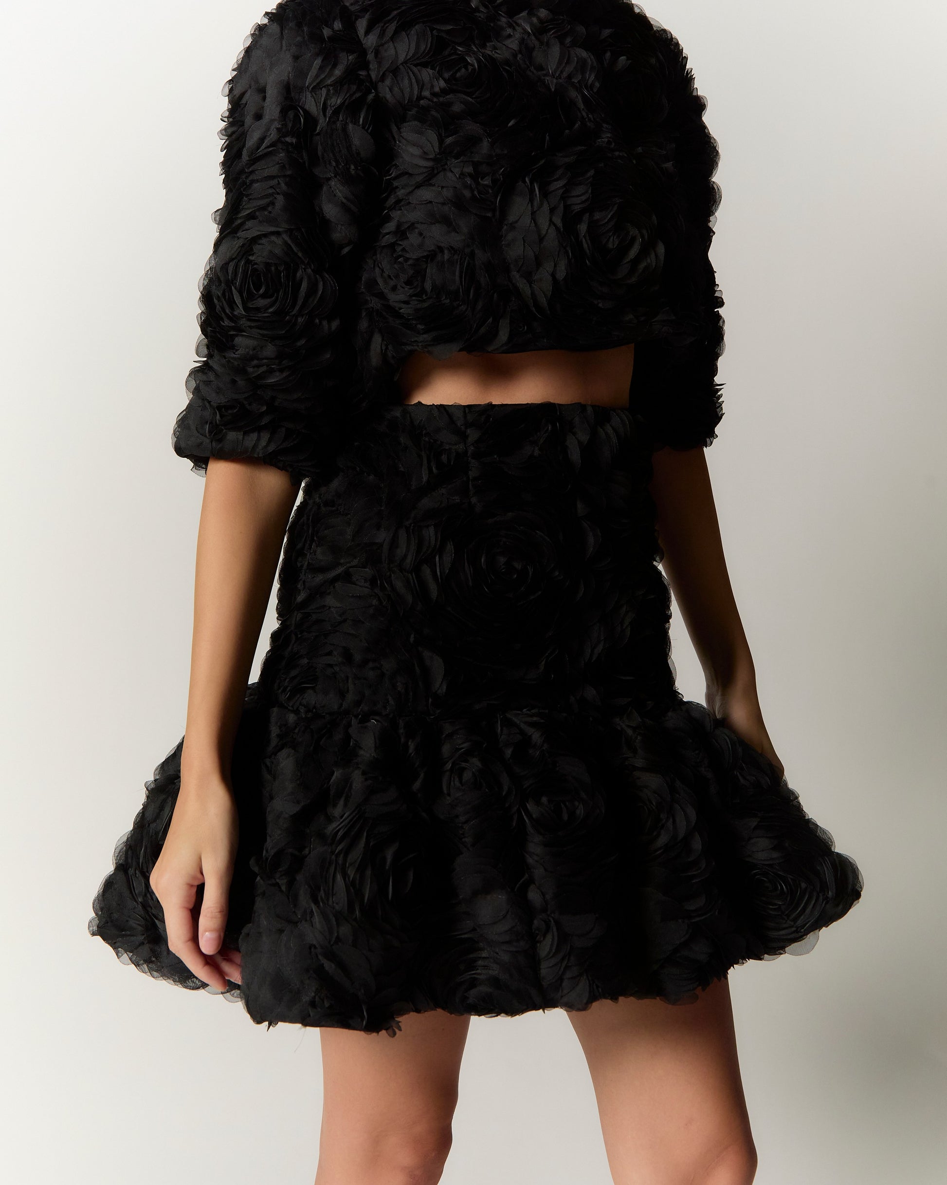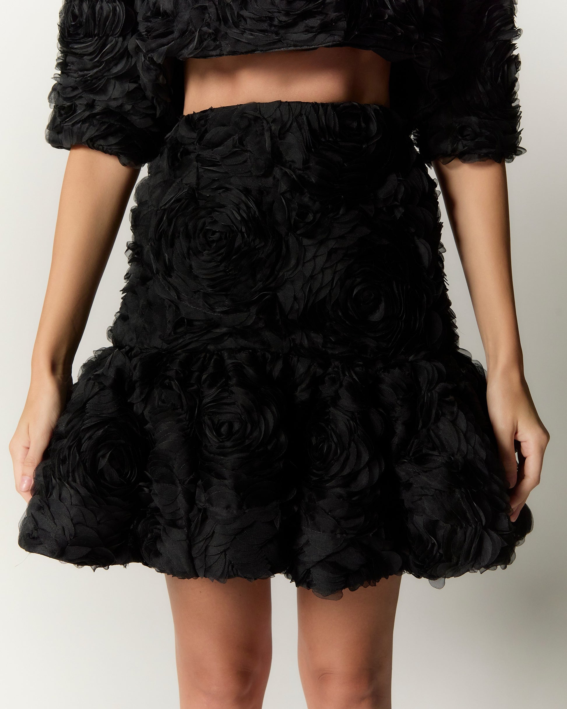 The Rośa Skirt combines a fit-and-flare silhouette with 3D rose lace fabric, adding volume for a flattering and elegant shape. This distinctive piece enhances any wardrobe with refined style.